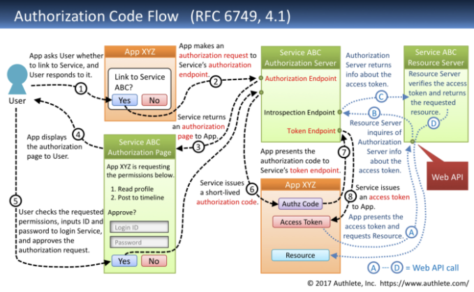 위 그림에서는 하나의 App XYZ로 표현을 했지만 혼란을 방지하기 위해 user-agent와 client로 따로 표현됐어야 하는 것이 아닌가 싶다. 여기서 말하는 App XYZ가 결국 하나의 application을 말하는 것이므로 frontend/backend를 전부 포함한 개념이라 생각하면 맞는 말 같기도 하고 잘 모르겠다.. 나만 혼란스럽나..?