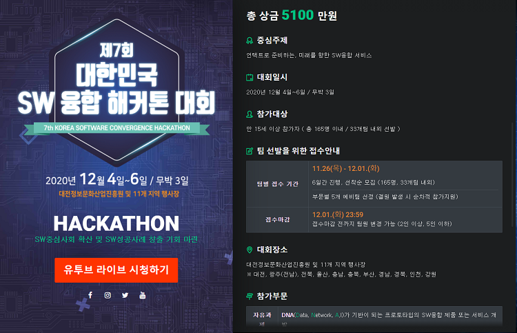 이 해커톤은 총 3개의 과제가 있는데, 각 과제 마다 5팀이나 수상하기에 이건 뭐 예선 통과하면 해볼만 하다 생각했기 때문이다!게다가 1등 대상의 경우 과학기술정보통신부 장관상 + 상금 500만원이라는 점!(+ 광주 온 김에 뽕뽑자는 마인드..) 아무튼, 기획서 제출 기간이 20/11/13 까지 였는데, 프로젝트 마감기한이랑 겹쳐서 12일에 밤을 새서 작성을 하고 제출했다..😫