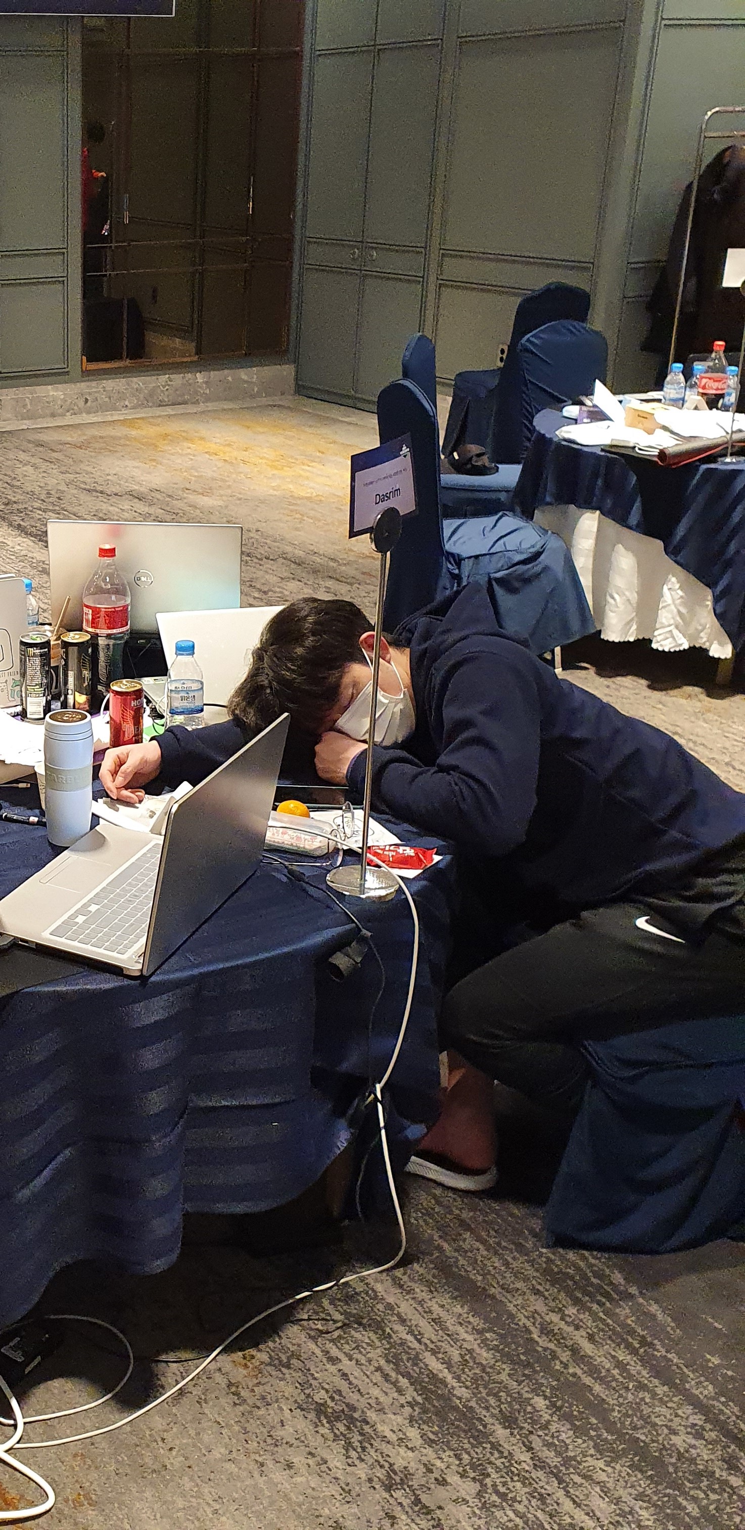 문제는 잠과의 사투인 것 같다. 팀원들이 돌아가면서 1~2명씩 휴개실에 쉬러 가거나, 잠깐 엎드려서 눈을 붙일 수 밖에 없었던 것 같다. 첫날은 생각보다 버틸만 하다. 하지만 그 이후부터는 내 정신이 아닌 것같다. 그래서 발표를 하는 사람은 컨디션 관리가 중요했던 것 같다. 발표 하신 우리 팀장님 정말 리스펙👍