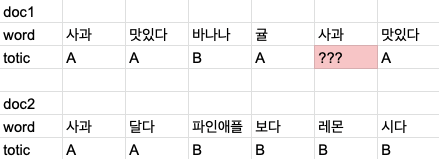 여기서 빨간색으로 칠한 사과의 토픽을 결정하려고 한다.